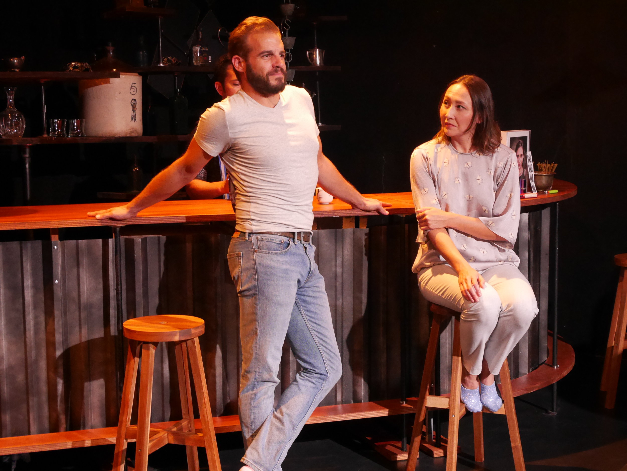 Everything about the production works because everything has been carefully planned, down to the monogramed matchbooks, flowers, and candles on the café tables, along with the physical movement of the cast members across the stage, the selection of the karaoke numbers and appropriately non-professional singing, as well as Oana Botez's costumes, Ray Sun Ruey-Horng's video projections, and Christopher Heilman's set design. All told, Seen / By Everyone decidedly rises above its non-linear performance roots to tell an emotionally honest and compelling story that sticks in the mind long after viewing it.